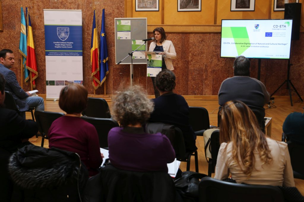 A CD-ETA projekt helyi érintettek nyolcadik és egyben utolsó találkozójára február 13-án, szerdán került sor Csíkszeredában a Megyeháza márványtermében. Hargita Megye Tanácsa partnerként vesz részt az Interreg Europe program által finanszírozott CD-ETA – „Collaborative Digitization of Natural and Cultural Heritage” elnevezésű projektben, amelynek fő célkitűzése a kulturális és természeti örökség digitalizálására vonatkozó politikák elfogadása és gyakorlatba ültetése, valamint a projektben résztvevő intézmények jó gyakorlatainak átvétele. A projekt kezdete óta a maival együtt összesen nyolc helyi érintett találkozóra került sor, mely számos szakterületet foglalt magába: természeti értékek, múzeumok és galériák, szellemi értékek, műemlékek és régészeti lelőhelyek, könyvtárak és levéltárak, valamint a helyi akcióterv vázlatának bemutatása és fejezeteinek véleményezése.
