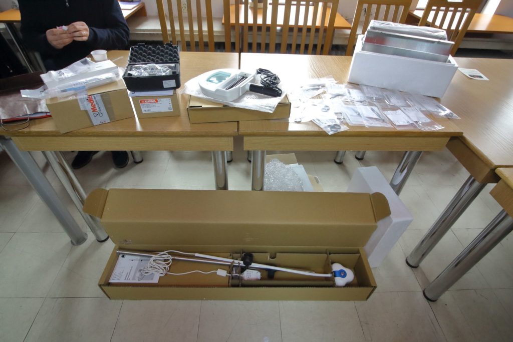 Dr. Galaczi Zsuzsanna, a bőrgyógyászati osztály vezetője azt mondta, alig várja, hogy kézbe vehessék a kapott műtéti eszközöket, amelyek nagyon hasznosak lesznek a kissebészeti beavatkozásaikban, a biopsziák elvégzésében. Az adomány része egy fóliázógép, amely a modern, fóliával történő sterilizálást teszi lehetővé és egy Wood-lámpa, amely kézi lámpa az egyes bakteriális, gombás betegségek diagnosztizálásában segíti az orvosokat.