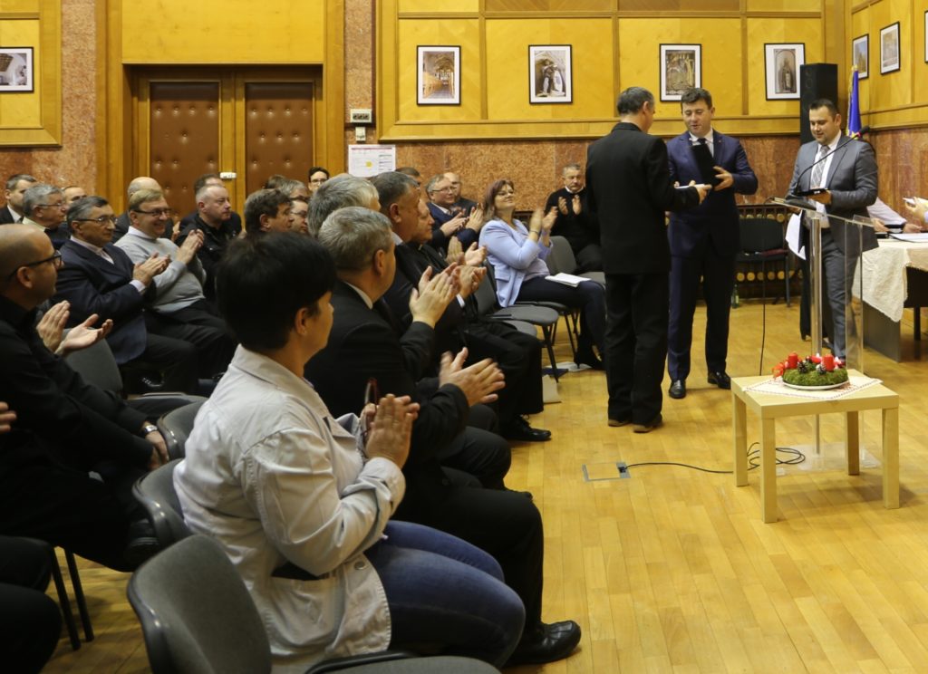 Az évértékelőn Hargita Megye Tanácsának elnöke, Borboly Csaba Márton Áron-emlékérmet adományozott egyházi személyeknek: