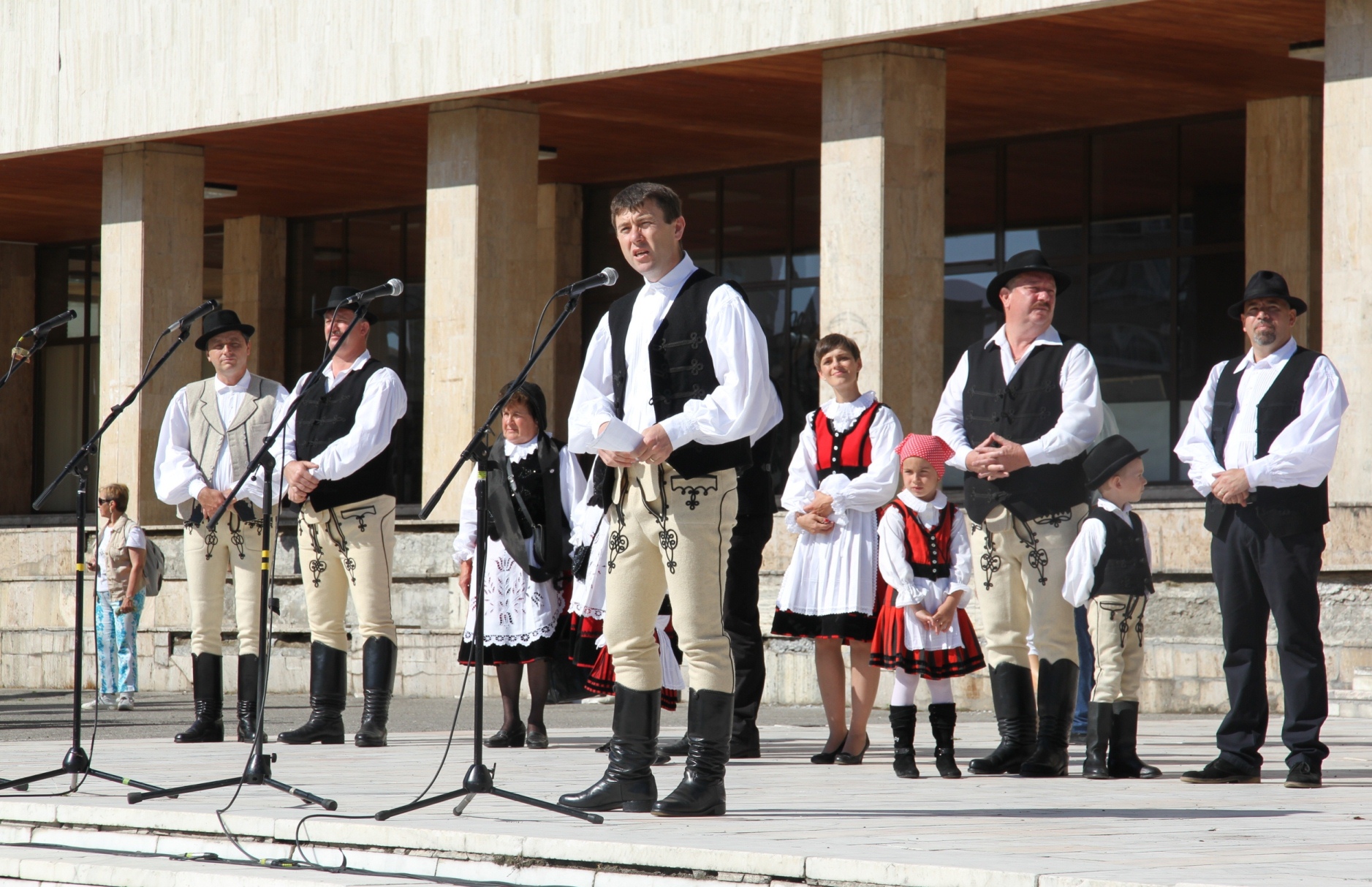 Mr. Attila Markó welcomed first those wearing traditional costumes and interested participants. As he claimed, he is glad to lead the Sekler girls and boys from Covasna County, who are in total number of 350, this year. In his speech he said that ‘this event always remembers me about the following line from Mr. Sándor Kányádi’s poem entitled as Black-red: ’One pair of girls, two pair of girls are dancing black-red black’. I truly wish that this dance to be danced by Sekler girls for a long time yet to come.’