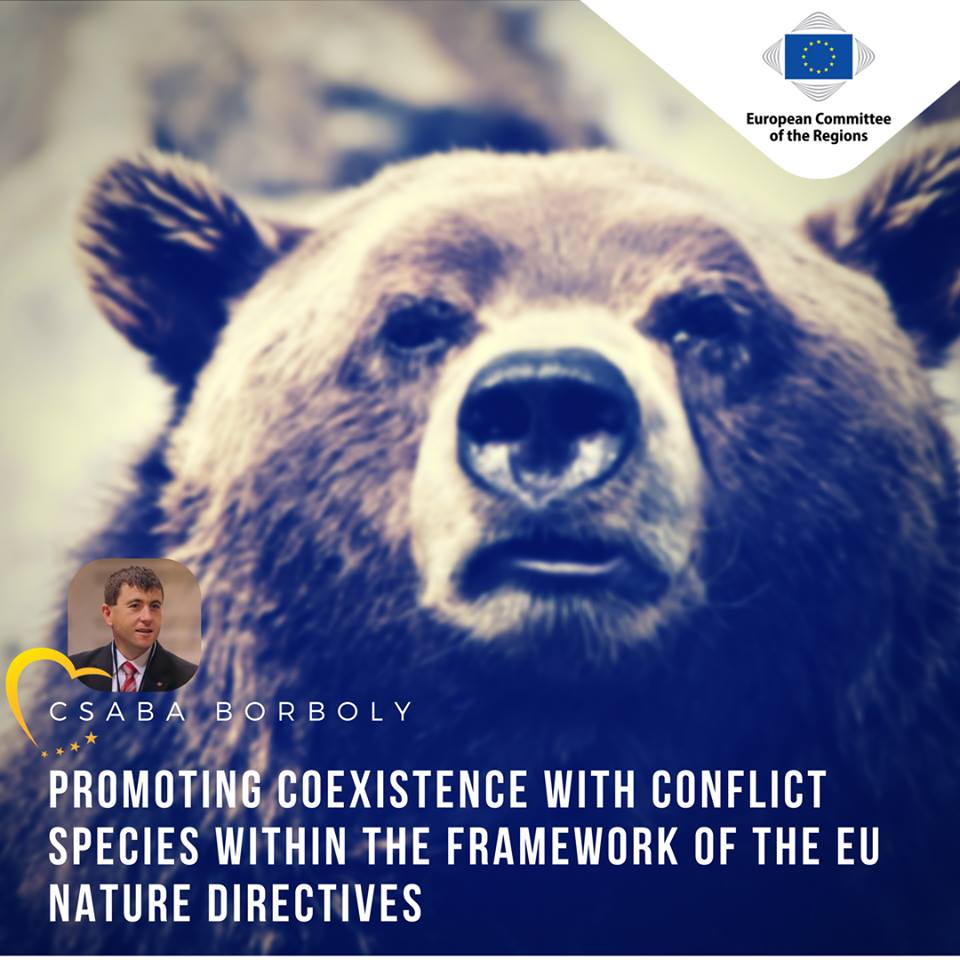 Borboly Csaba has proposed the elaboration of an opinion on promoting coexistence with conflict species (e.g. brown bear), which will analyze human-wildlife conflicts within the framework of EU Nature Directives. The proposal was accepted by unanimous vote by the Commission for the Environment, Climate Change and Energy (ENVE) of the Committee in Talin at 4th of July.