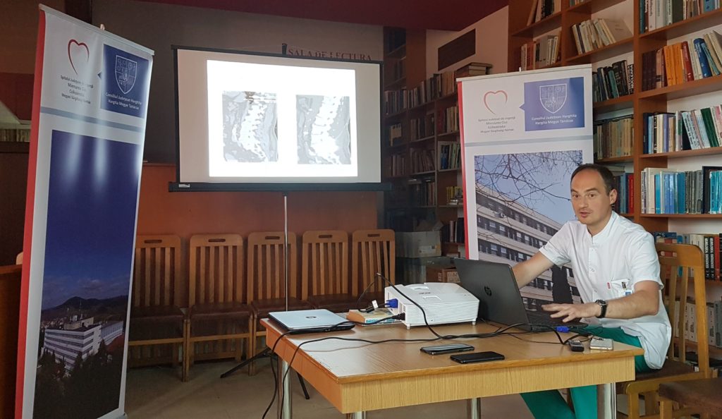 Dr. Solti Norbert idegsebész szakorvos, a kórház idegsebészeti részlegének vezetője azt mondta el, régi tervük vált valóra a gerincstabilizációs műtétekkel, egy éve még nem is gondolták volna, hogy sikerül a szükséges anyagokat beszerezni és a műtéteket elvégezni. „Hargita és Kovászna megyében ezek a műtétek eddig nem zajlottak, a betegeket egyetemi központokba küldtük, ahol a krónikus betegek számára hét-nyolc hónapos várólisták is vannak. Eddig három ilyen beavatkozást végeztünk és a napokban lesz a következő” – ismertette a szakember. Kifejtette, drága beavatkozásokról van szó, az egy műtét során beültetésre kerülő titánium eszközök legalább ötszáz euróba kerülnek. Remélik, hogy megfelelő számú elvégzett műtét után a kórház is részese lehet az erre vonatkozó országos egészségügyi programoknak, így közvetlen finanszírozás érkezhet a beavatkozásokra a szaktárcától. Ha az megvalósulna, akkor az ilyenkor használatos eszköztár is hosszabb távra a kórházba kerülhetne, jelenleg ugyanis a szükséges műszerszettet esetenként postázza a szakcég a kórházhoz.