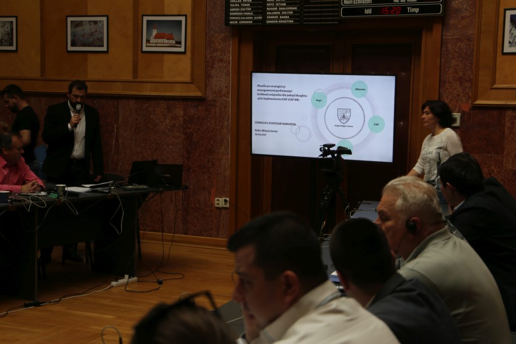 Szőcs-Mátyás István menedzsment vezérigazgató ismertette a vezérigazgatóság által sikeres európai uniós pályázatot, amely a CAF keretrendszert fogja használni, amely kifejezetten közigazgatási intézményeknek van kifejlesztve. A stratégiai tervezés és teljesítménymenedzsment a Hargita megyei polgárok javára projekt olyan képzéseket és tapasztalatszerzésre nyújt lehetőséget, amely növelni tudja az itt dolgozók teljesítményét.