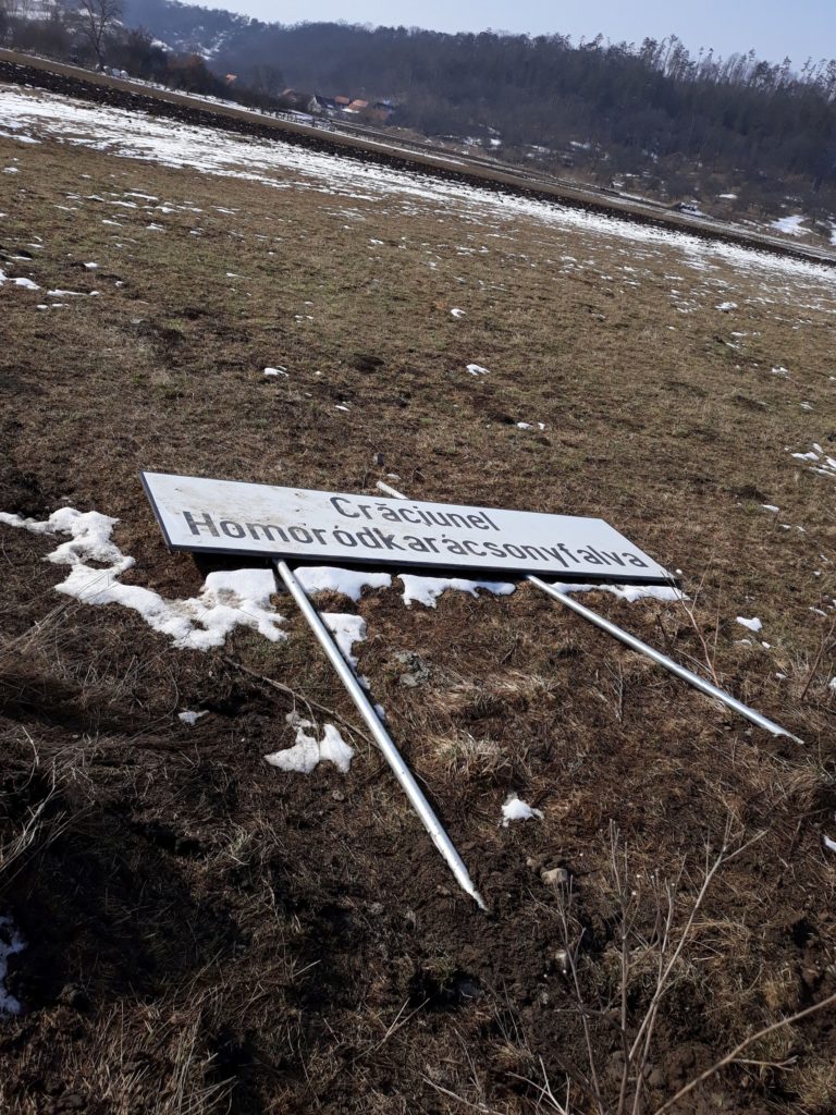 Most azt kell tapasztalnunk, hogy valaki vagy valakik szemét az új táblák is szúrják. Kollégáim több megrongált táblát is láttak. Megyeszerte több tíz hasonló esettel találkozunk. Egy ilyen tábla csaknem 600 lejbe kerül. A kollégáktól pedig értékes időt vesznek el, amíg beazonosítják és kicserélik a táblákat. Arról nem is beszélve, hogy a földön heverő táblákat nehéz észrevenni, ha a friss hó eltakarja.
