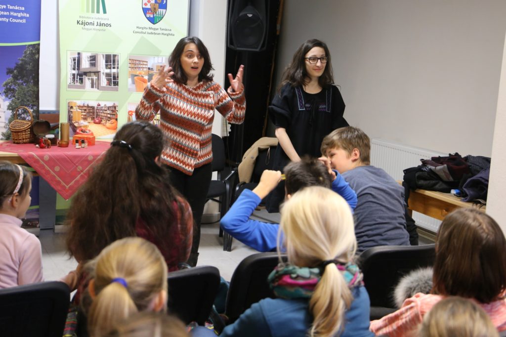 Az adventi időszak kezdetén, december 3-6. között a Tekergő Meseösvény Egyesület volt a Hargita Megye Tanácsa alintézményeként működő Kájoni János Megyei Könyvtár vendége, a karácsonyi ünnepkör és a decemberi jeles napok témája köré felfűzött népmesecsokorral, interaktív mesehallgatással, meséléssel készült több száz gyerek az ünnepre.