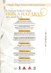 Hon a hazában címmel idén is több napos rendezvénysorozattal tiszteleg január 20-28. között a magyar kultúra napja előtt Hargita Megye Tanácsa és alintézményei a megye több településén.
